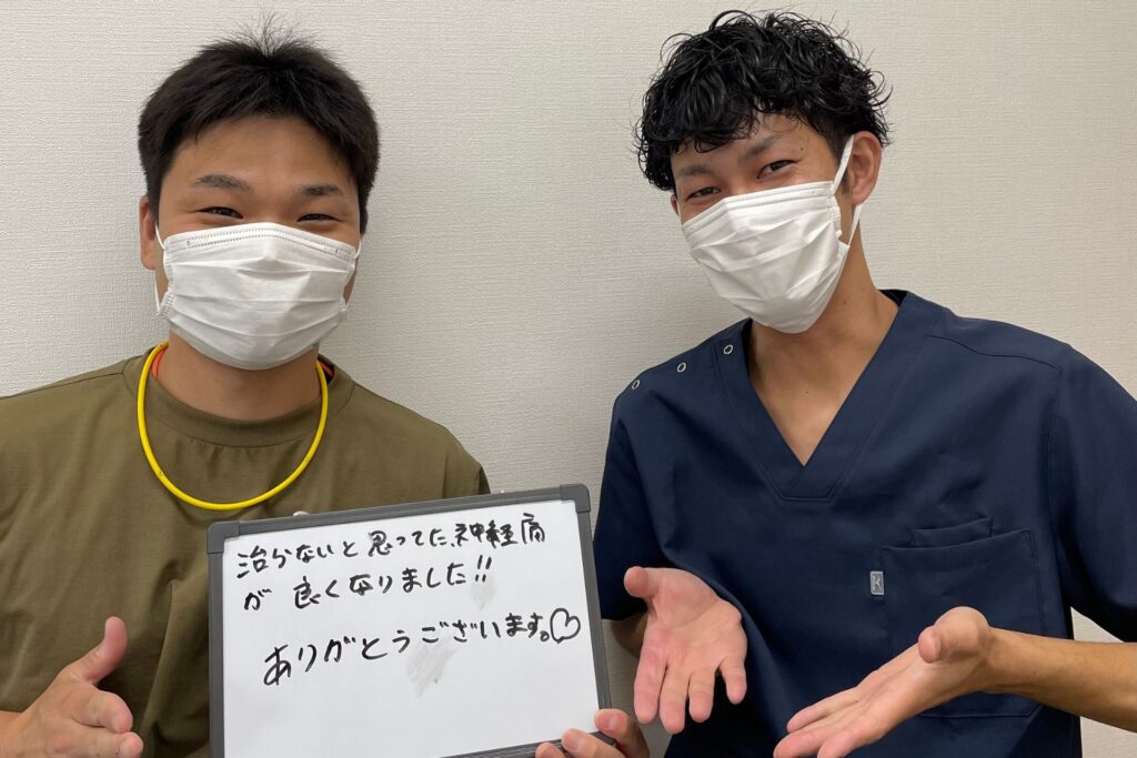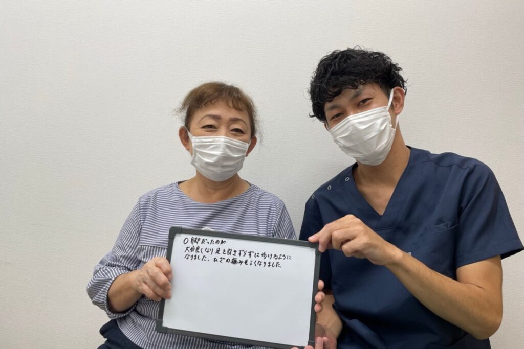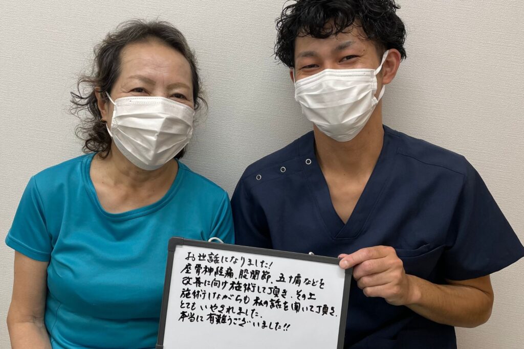 坐骨神経痛、五十肩で悩まれていたお客様です。今ではすっかり痺れも改善され、肩の可動域も徐々に戻ってきました!