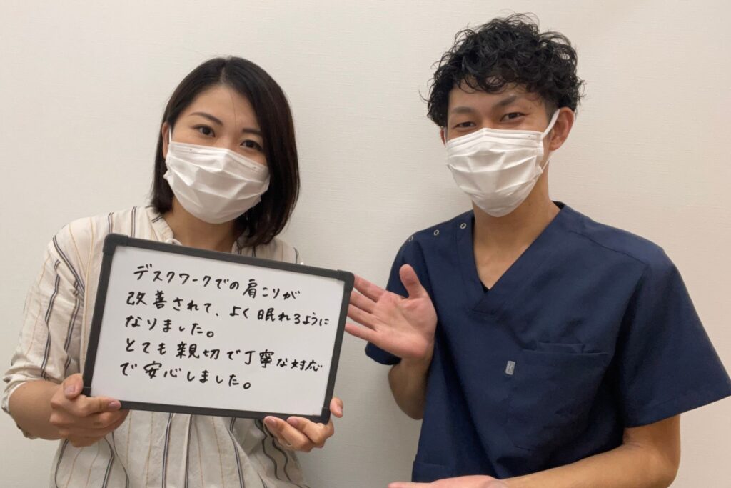 デスクワークの肩こりが改善されて、よく眠れるようになりました。