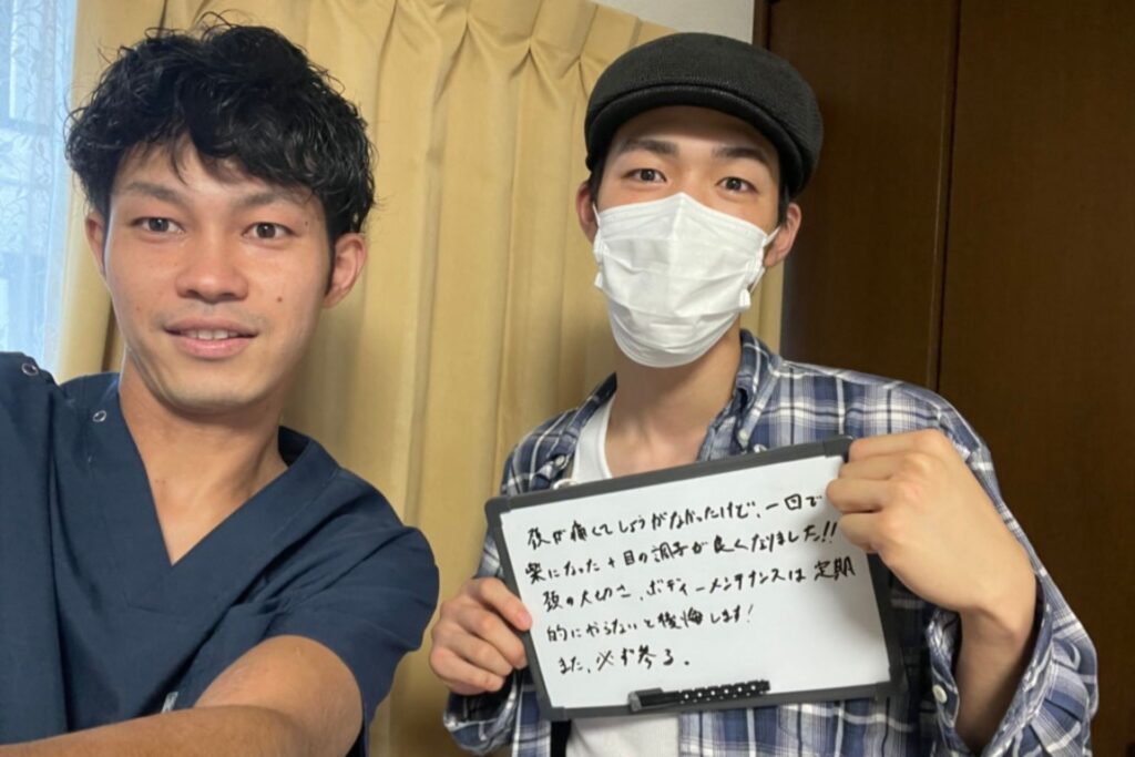 社会人サッカー選手のお客様です。スポーツ後のケアもお任せください!