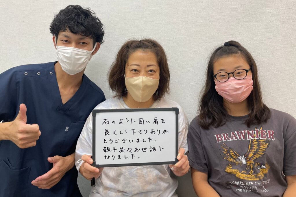 石のように固い肩を良くして下さりありがとうございました。