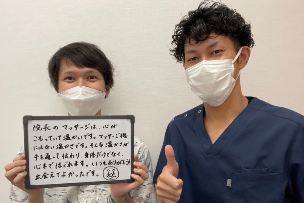 院長のマッサージは心がこもっていて温かいです。マッサージ機にはない温かさです。